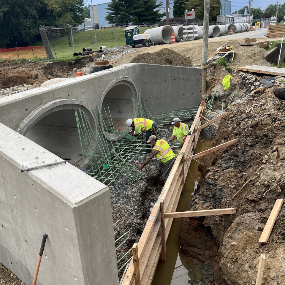 - Existing culvert replaced with twin elliptical concrete pipes and two new concrete endwalls